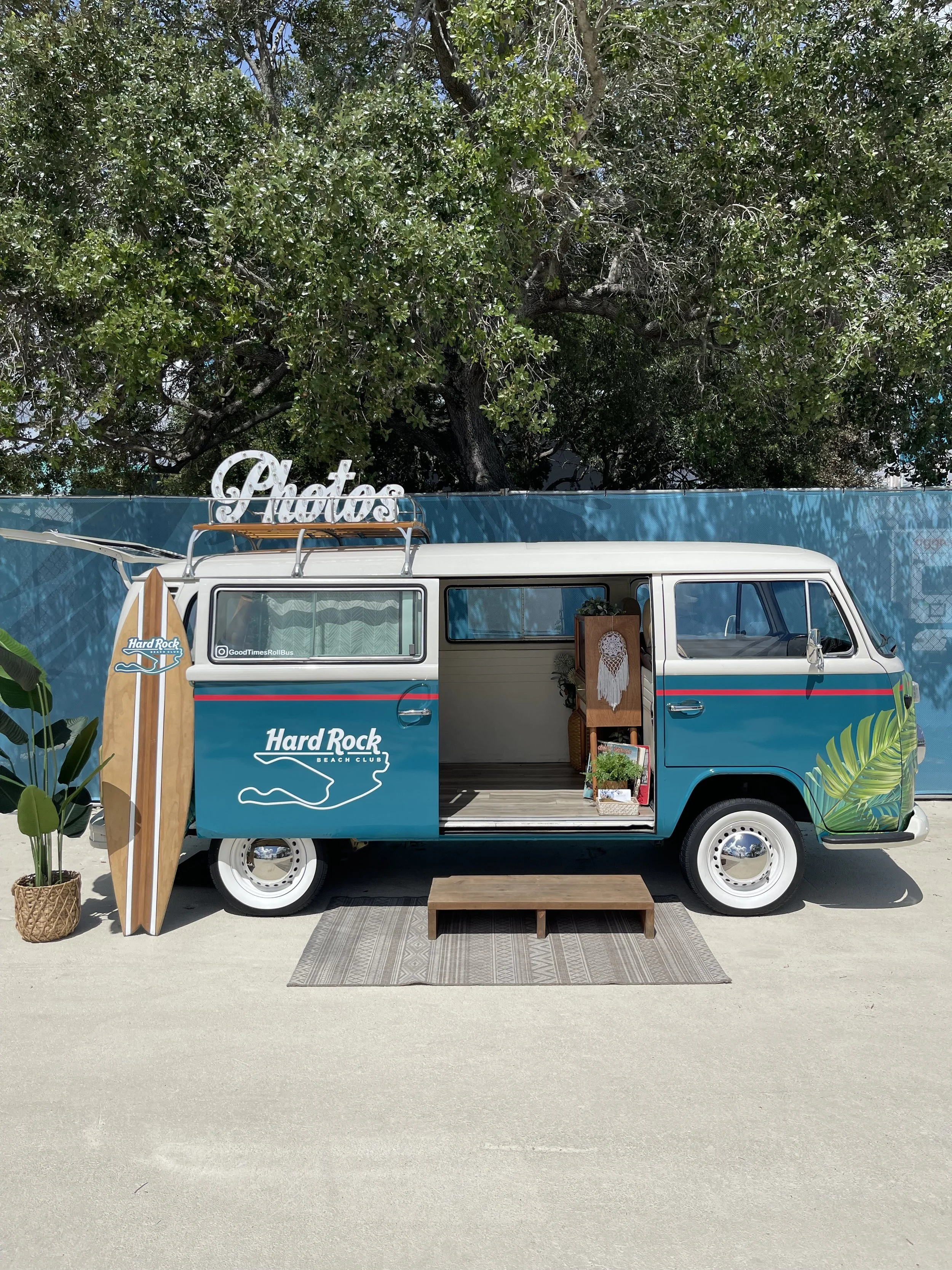Inside & Outside Shots: Snap gorgeous pictures against our custom hedge wall inside the bus or strike a pose with the iconic VW exterior. Double the fun, double the photos!